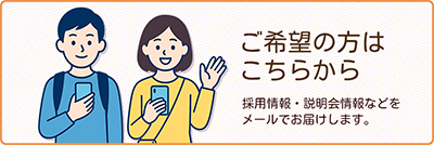採用情報・就職説明会情報などをメールにて配信します。こちらから登録してください。